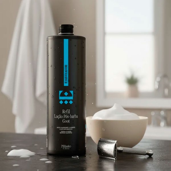 Lave e seque o rosto após a barba, aplique a loção com leves movimentos circulares e deixe-a secar naturalmente. Isso ajuda a acalmar a pele e a manter a hidratação